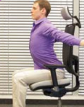 Long-term sitting can round the shoulders and bring your head forward, strain the spinal curves and tighten the muscles in the chest. Stretching your chest muscles helps to reverse this posture. Sit comfortably on your chair with your feet flat on the floor. Lengthen your spine. Turn your arms outward so your elbows are straight and your palms face forward. Then raise your arms to a 45-degree angle. Pull your shoulders and arms back and downward. Once you feel a stretch across your chest, hold for 20 - 30 seconds. Repeat three times.